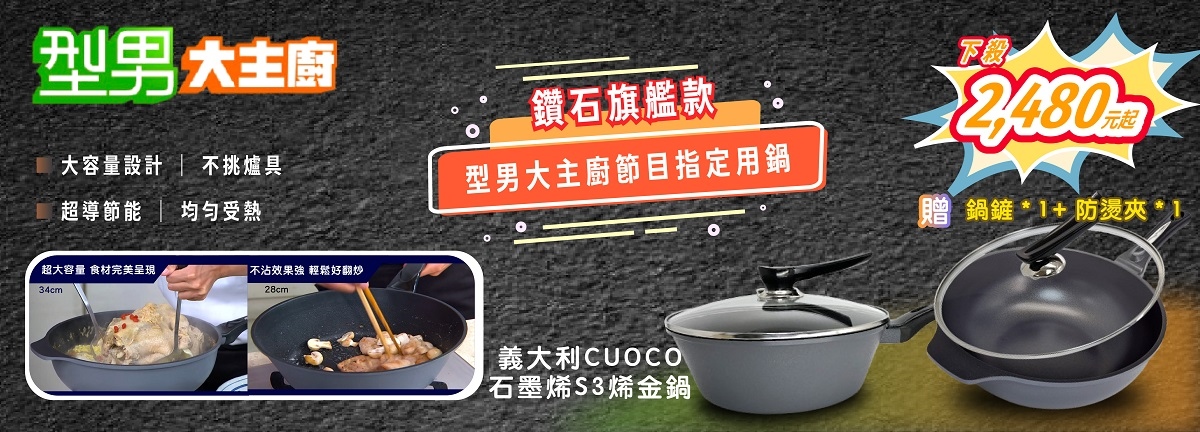 【型男大主廚強力推薦】鑽石旗艦版【義大利CUOCO】專利石墨烯S3-IH大寶鍋34cm(附蓋)