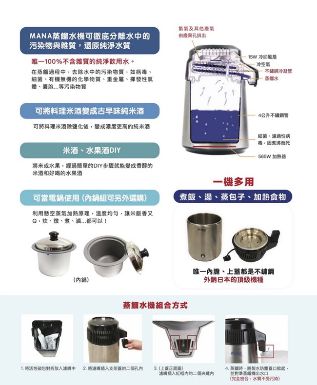 MANA蒸餾水機製造純水系統簡單而有效率, 不會造成任何浪費, 最環保