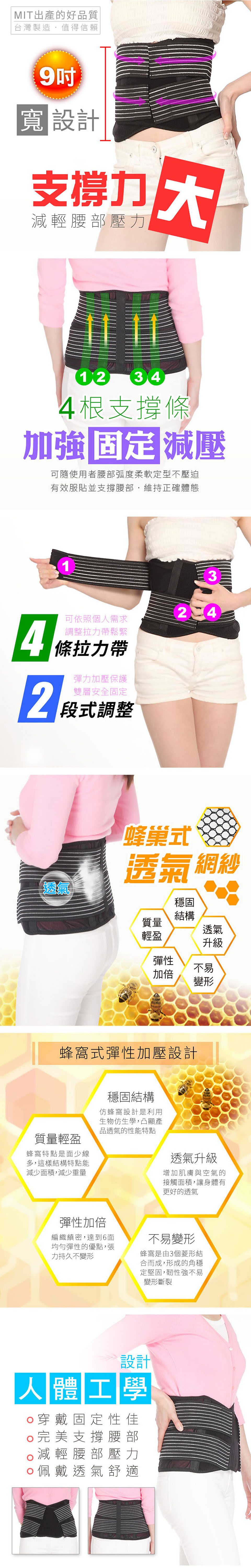 商品:【JS嚴選】9吋寬版可調式透氣網紗護腰帶*1 入