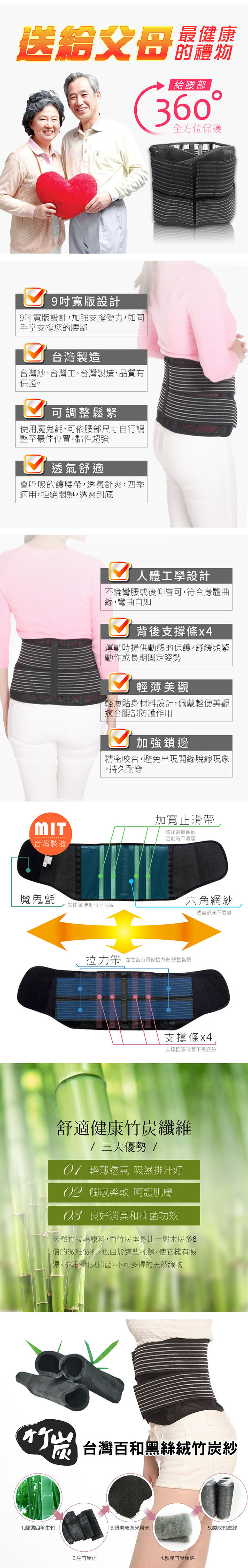 【JS嚴選】9吋寬版可調式竹炭網紗塑身收腹護腰帶(9吋腰帶+CC灰膝腕踝)