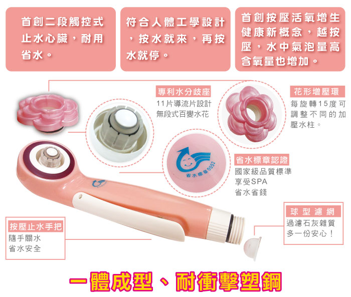 .魔特萊 按壓式spa負離子加壓省水蓮蓬頭*1
