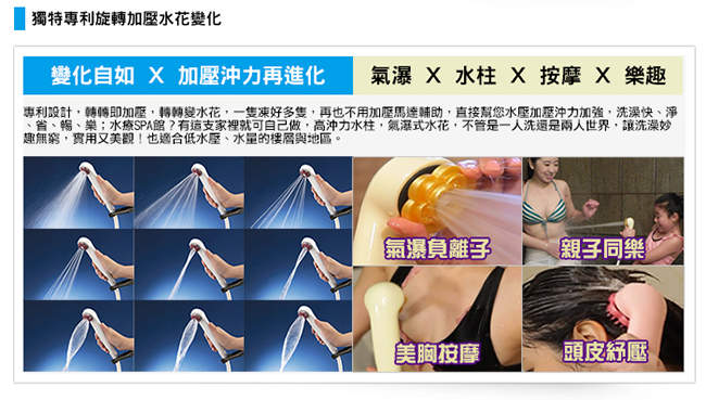 .加壓百變負離子省水蓮蓬頭