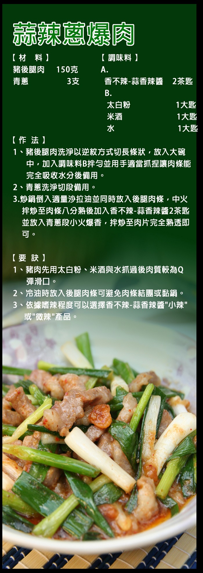 品名:香不辣-蒜酥辣醬 (微辣*4罐) 容量:120公克 ± 3% 成份:辣椒、蒜頭、蝦米、柴魚、芝麻、沙拉油、油蔥酥、醬油、鹽、糖 保存期限:六個月