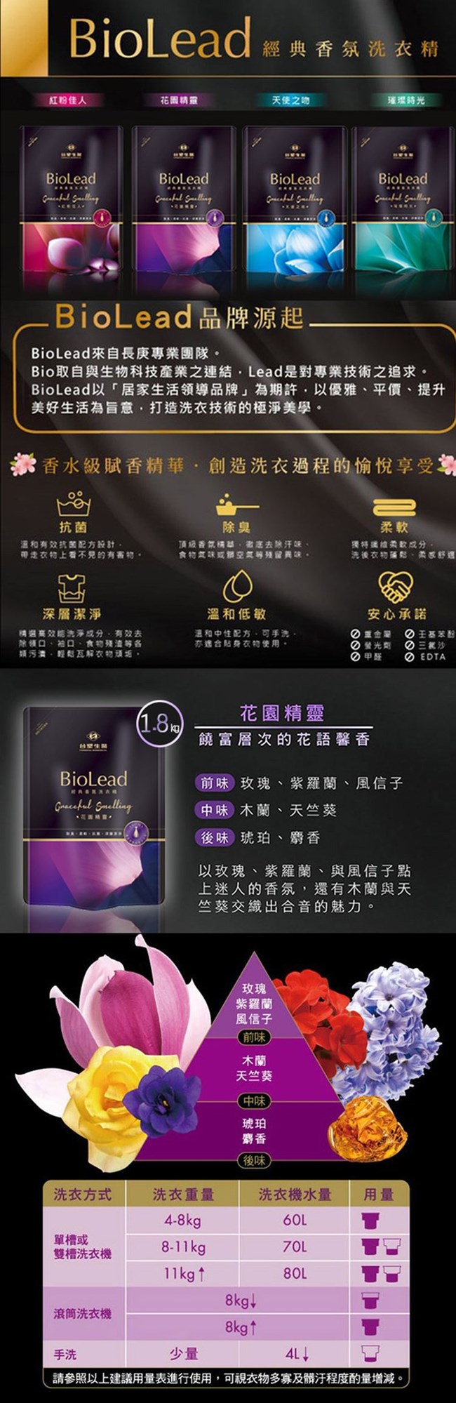 品名:BioLead經典香氛洗衣精補充包 花園精靈1.8kg