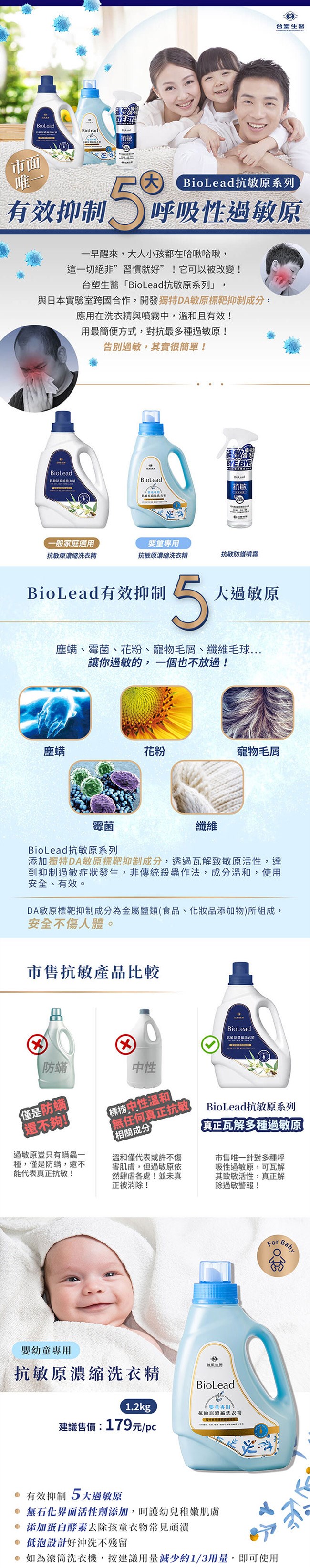 品名:BioLead抗敏原濃縮洗衣精 嬰幼兒衣物專用(5瓶+10包)