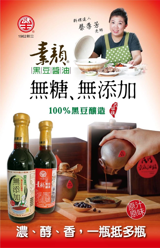 古法製麴方式,甕缸日曝發酵、原汁自然滴出、工法不經壓榨、原料只用水、黑豆、蔗糖、天然鹽,無添加防腐劑、無添加甜味劑、無添加味劑、無添加味精等,拒絕任何添加物