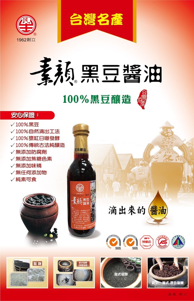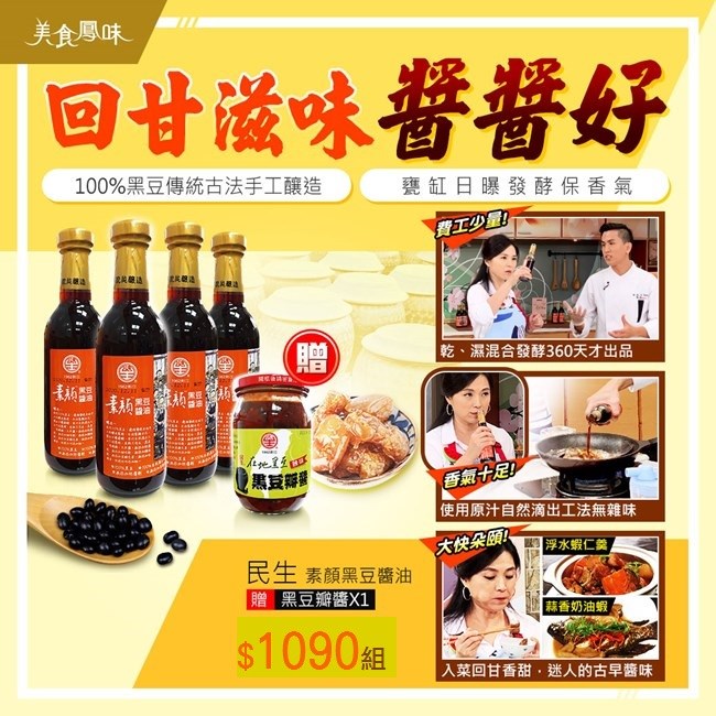 品名:民生素顏黑豆醬油(釀造醬油)4入