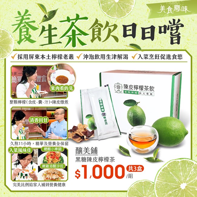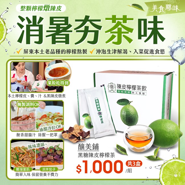 屏東素有「檸檬之鄉」美譽的優質,屏東本土老品種的檸檬,先費2天切碎、去籽,再加上台南黑糖,費時11小時,專人反覆高溫中溫來回熬煮,不但保留所有營養,風味還特別濃醇。陳皮檸檬的順濃香,一入口即可自己感覺出來。酸度適中且沒有苦澀味,香氣十足