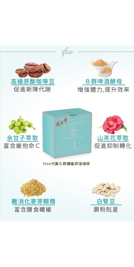 成分:阿拉比卡即溶咖啡粉、難消化性麥芽糊精、天然酵母B群、甘露醇、羊角豆萃取物、余甘子萃取物、山茶花萃取物、白腎豆萃取物、菇蕈抽取物