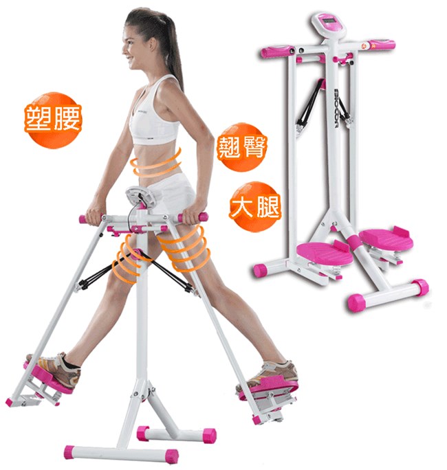 2.腿直立在踏板上轉身90度,做前後邁步運動,可以鍛煉鍛煉臀部肌力,襯托臀部曲線,同時可以做到活動膝部關節的效果。