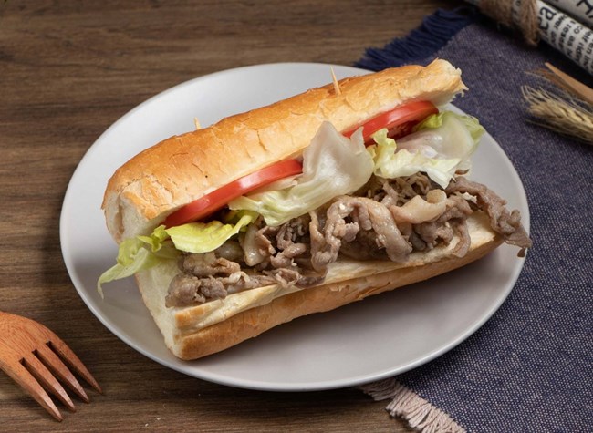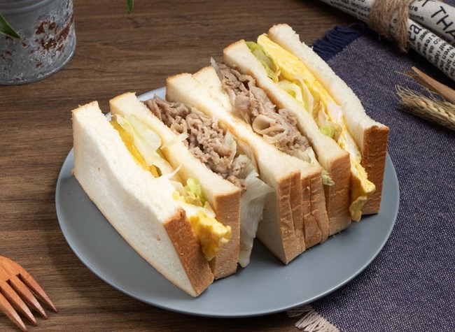 將拌炒完成的川味椒麻五花肉片做為軟法的內餡,同時加入適量的生菜及蕃茄, 即可享用美味早餐.
