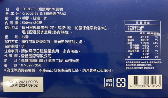 DR.BEST 鱷魚烯PPAC膠囊(30粒/盒)-電