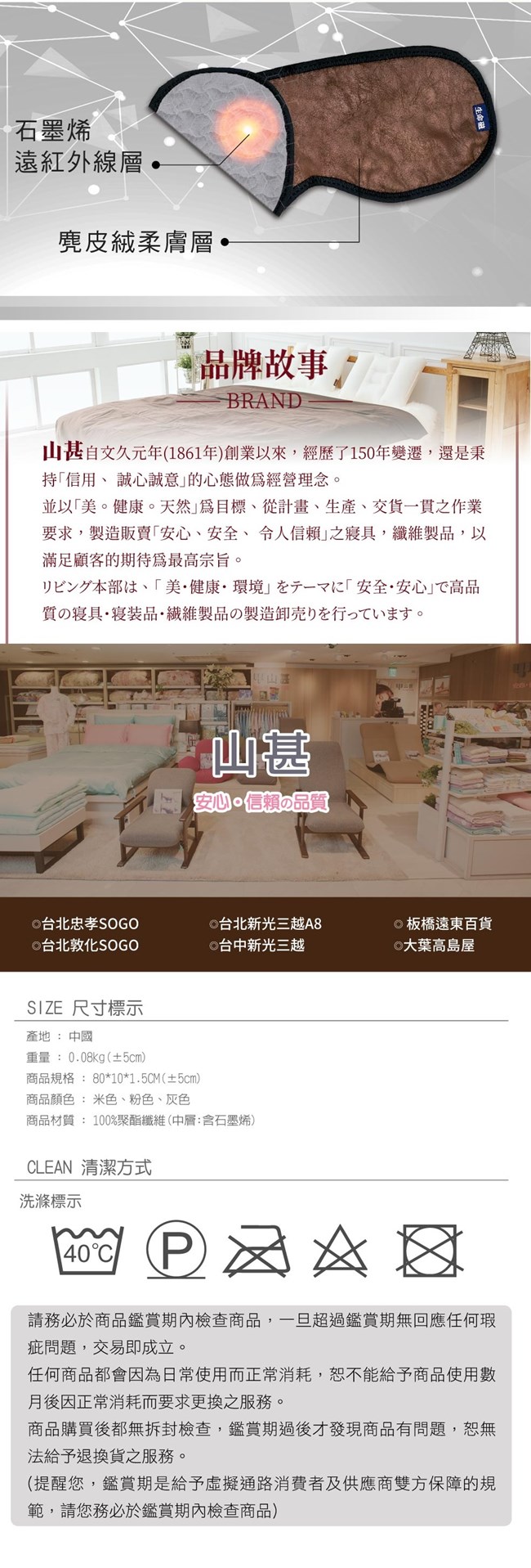 商品材質:100%聚酯纖維(中層:含石墨稀)