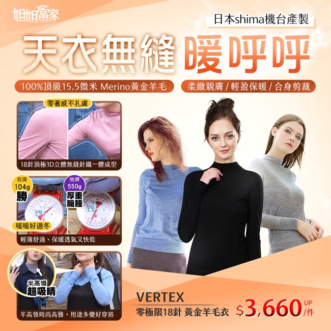 商品內容:VERTEX 零極限18針黃金羊毛衣