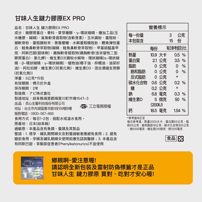 【日本原裝】甘味人生 鍵力膠原EX PRO(3gx15包)x3盒 檢場代言-電(阿姐萬歲節目推薦)