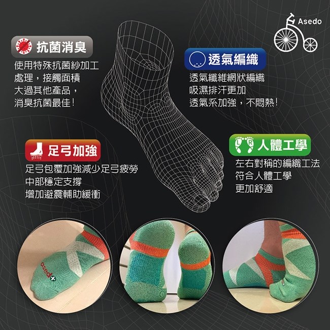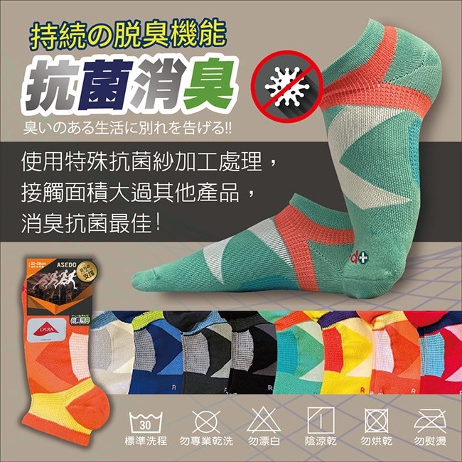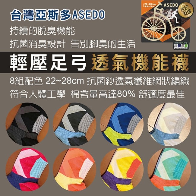 亞斯多 Asedo 輕壓力 抗菌除臭足弓襪