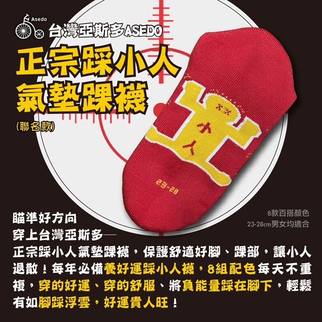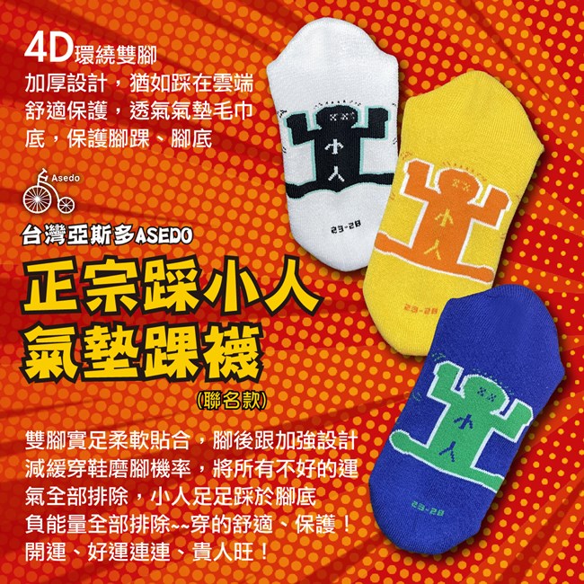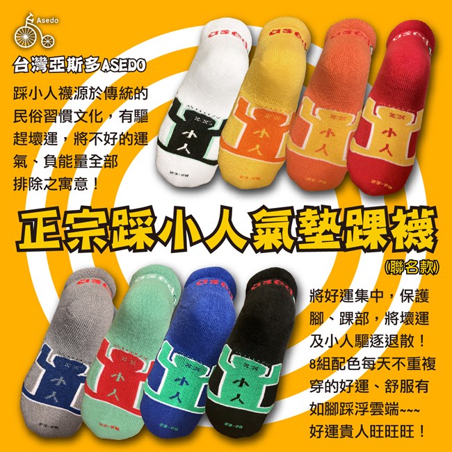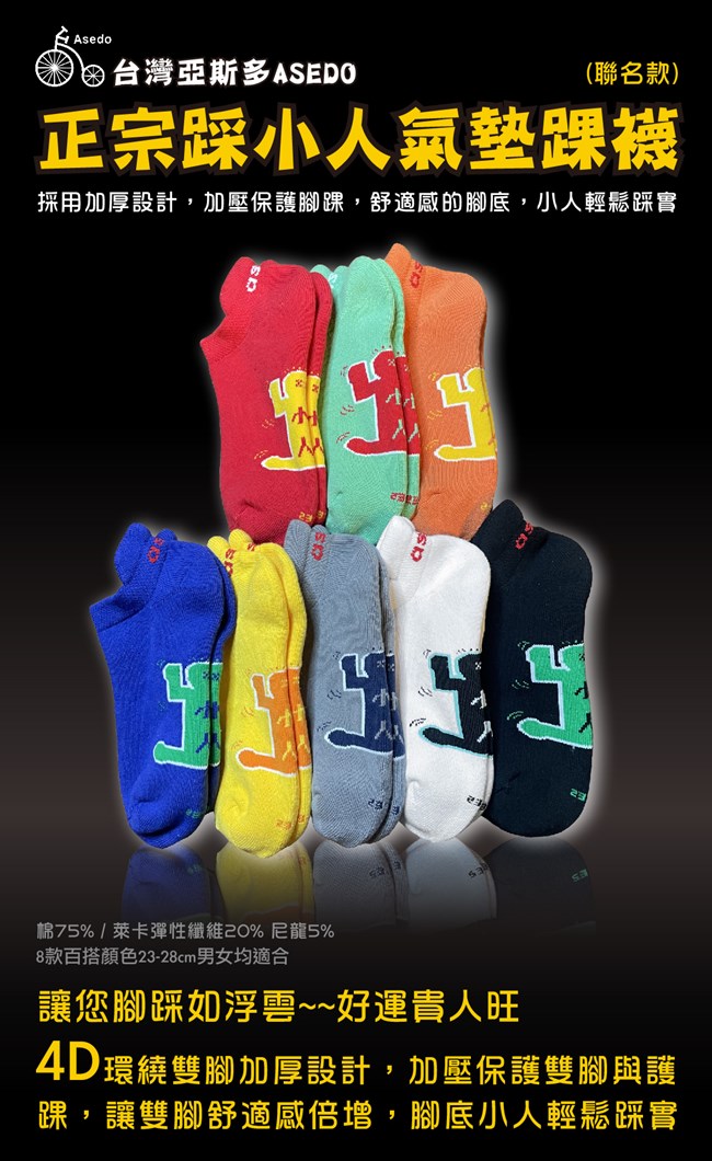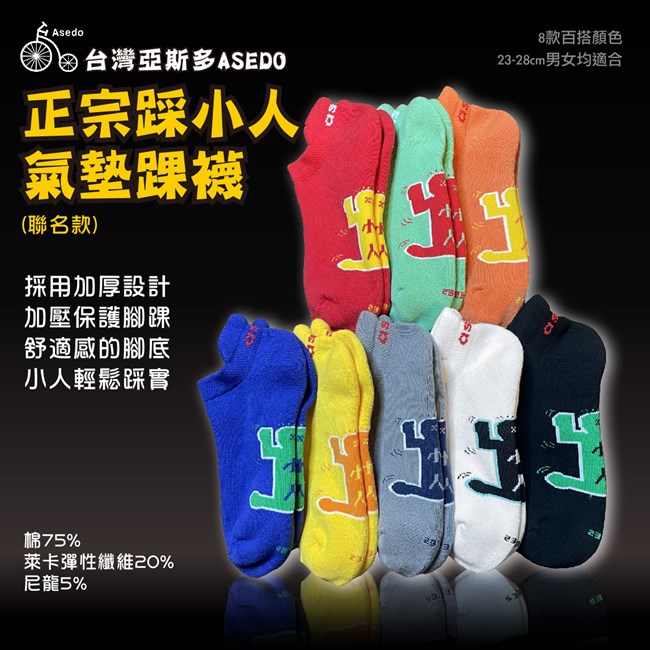 台灣亞斯多 ASEDO 正宗踩小人氣墊踝襪聯名款 8雙(組)-美