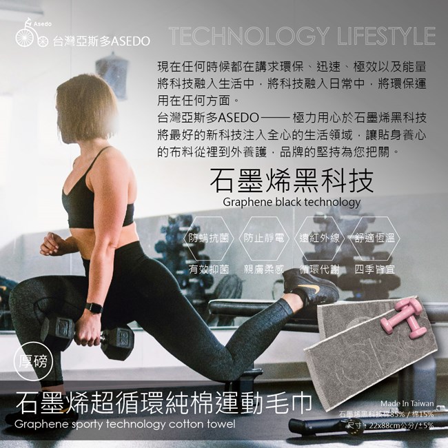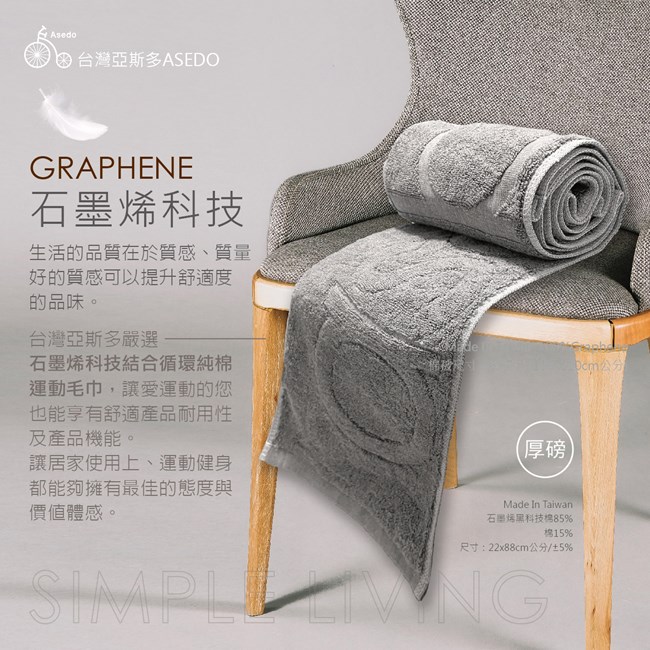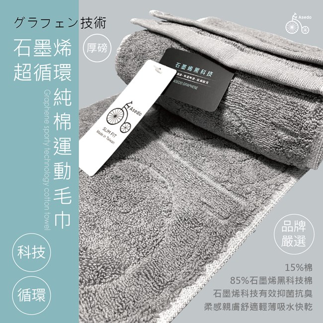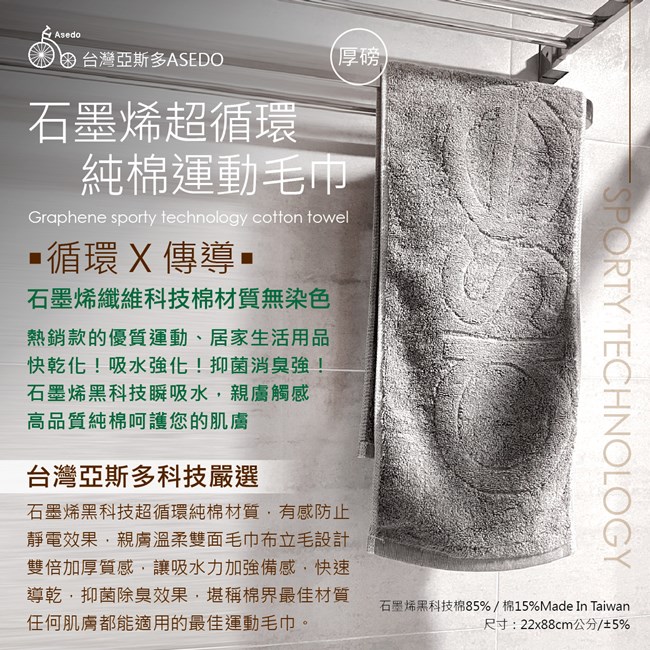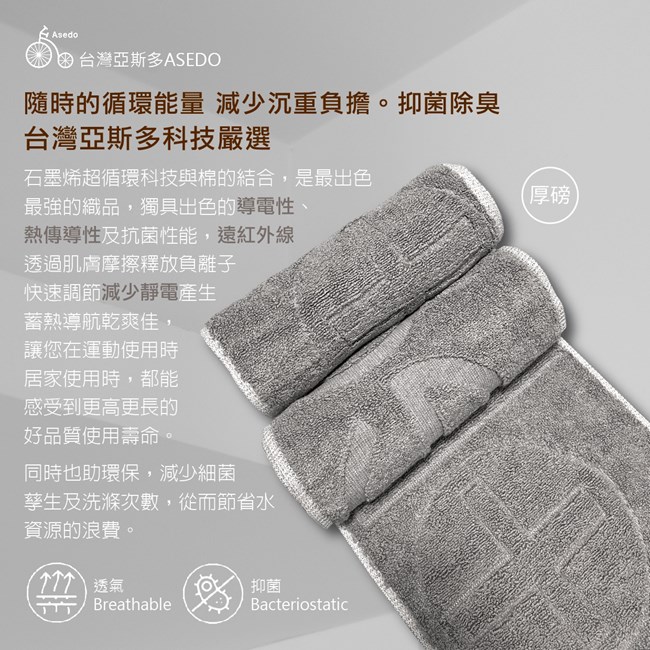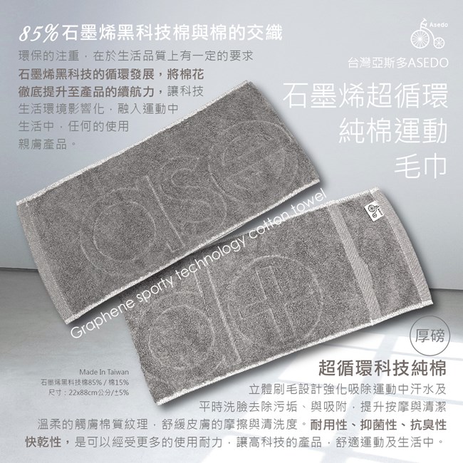 台灣亞斯多 ASEDO石墨烯超循環純棉運動毛巾