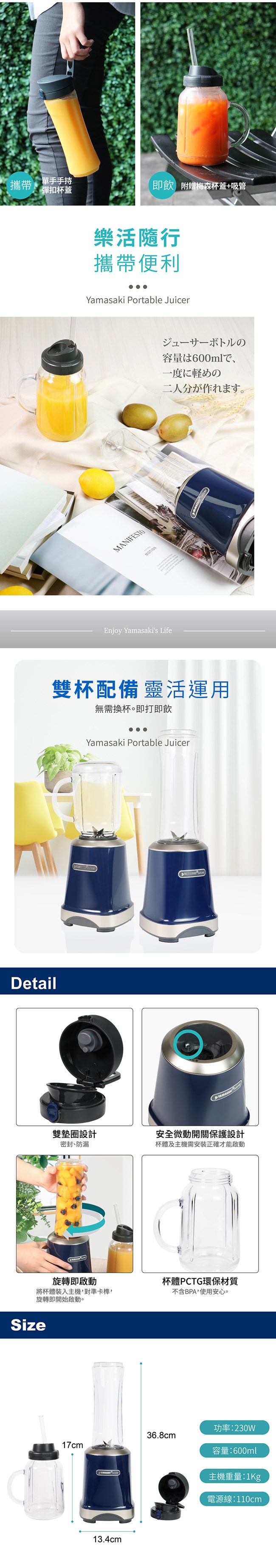 [Yamasaki] 日式隨纖杯果汁機 │ SK-1160JP-美