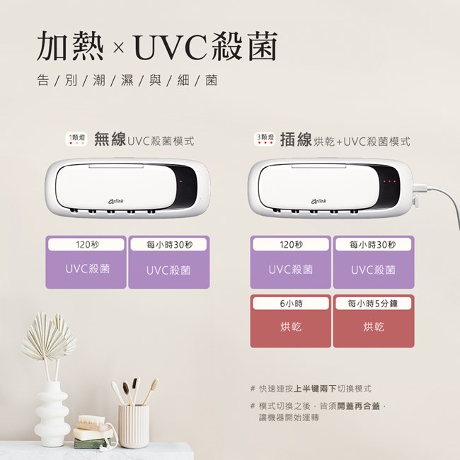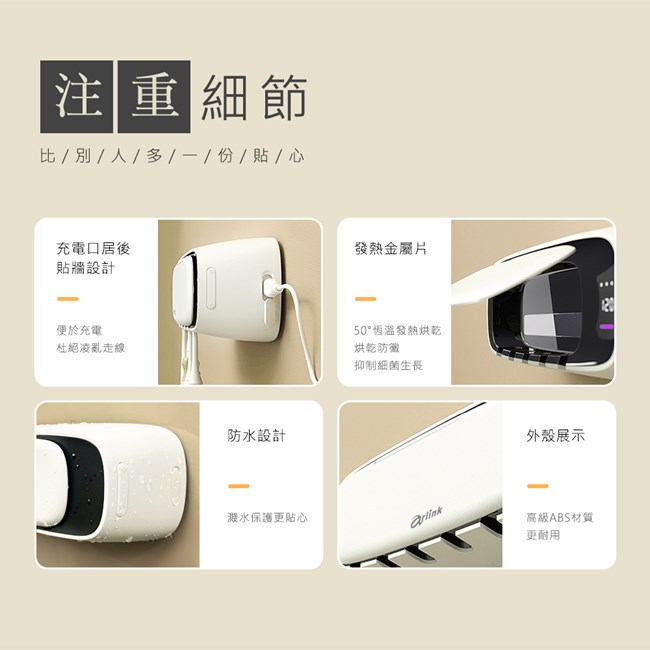 Arlink TS65 大容量4000Mah智慧紫外線消毒烘乾牙刷架-蝦