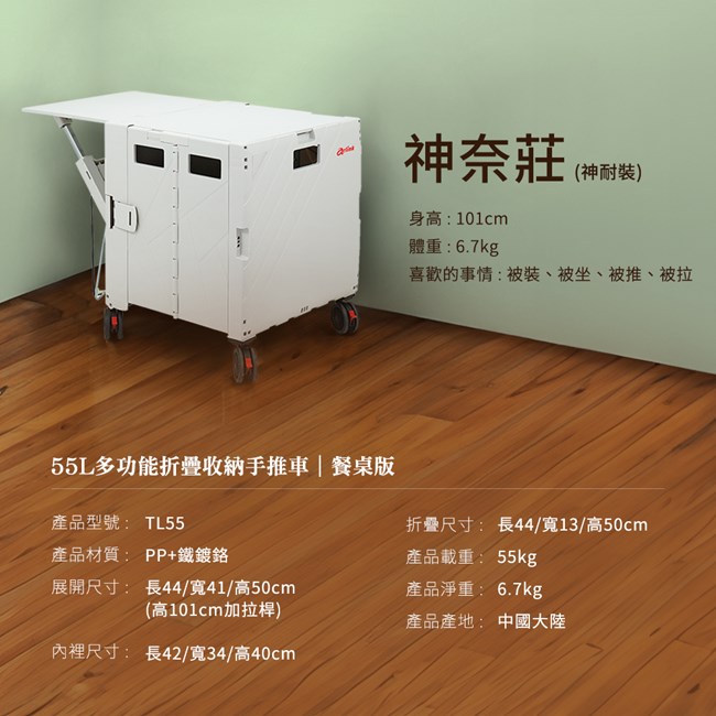 Arlink 神耐裝TL55L多功能秒開收折疊式收納手推車 免組裝(餐桌版/手拉車/可平推/斜拉)-蝦