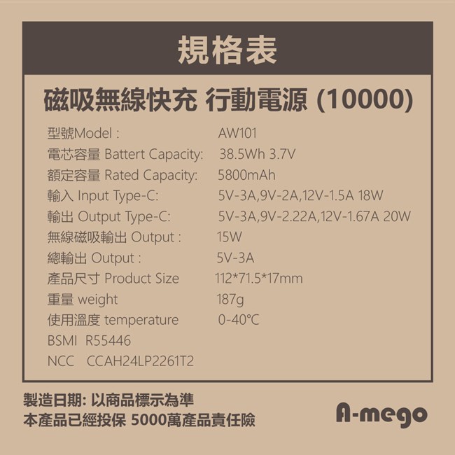 A-mego磁吸式粉餅機行動電源(10000mAh)-蝦