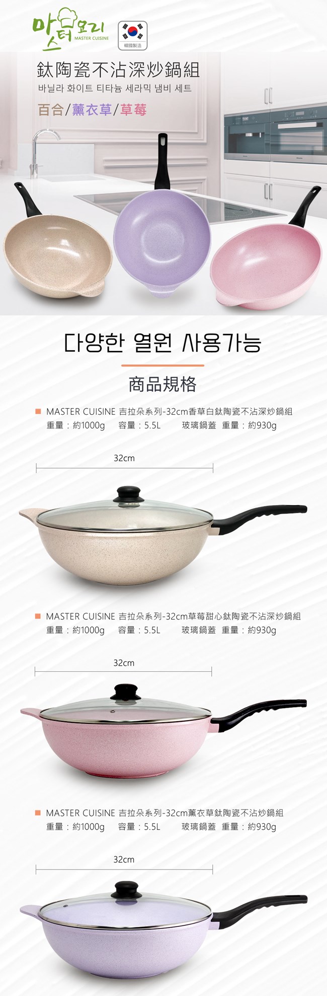 【韓國MASTER CUISINE】裸色香繽系列-鈦陶瓷不沾炒鍋組32cm(附蓋)-美