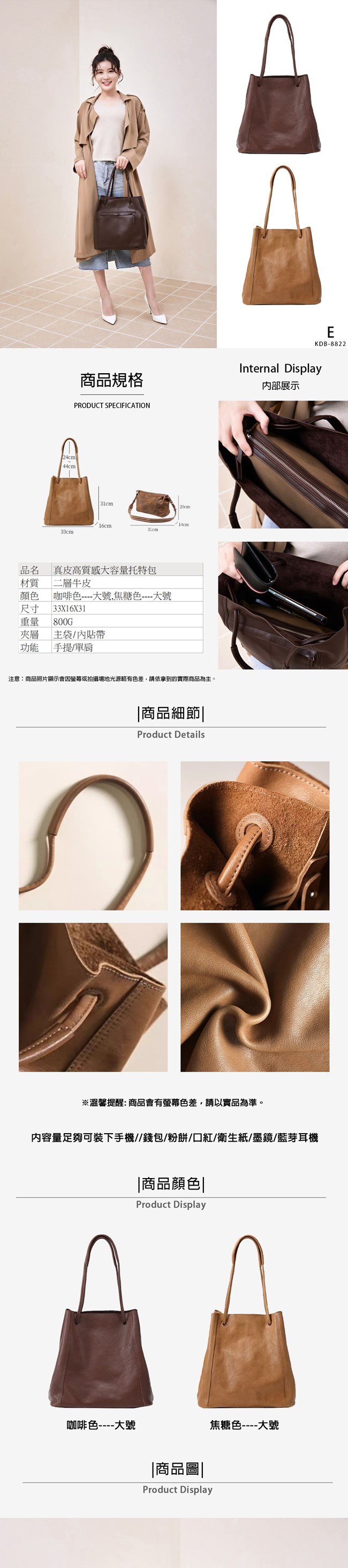 品名 真皮高質感大容量托特包