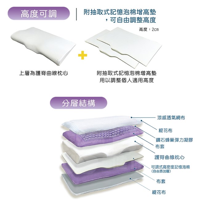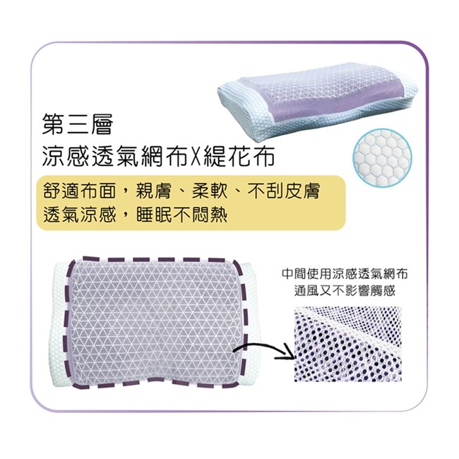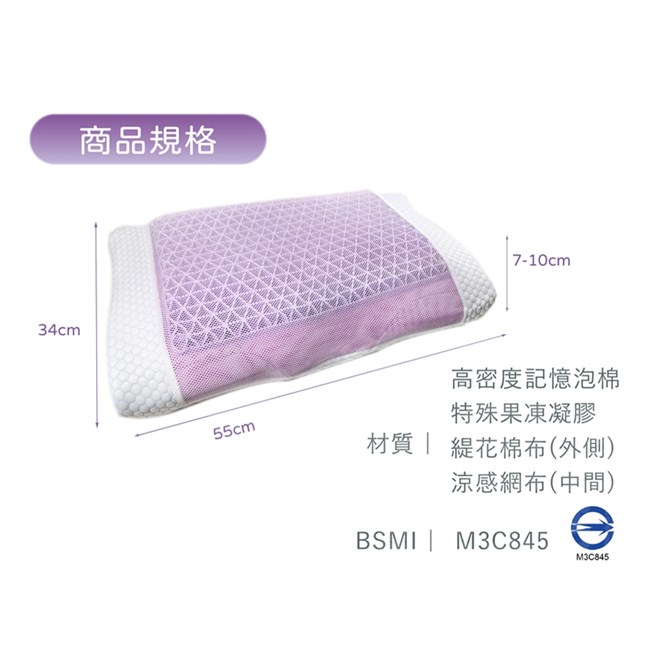 材質:高密度記憶泡棉+特殊果凍凝膠+緹花棉布(外側)+涼感網布(中間)