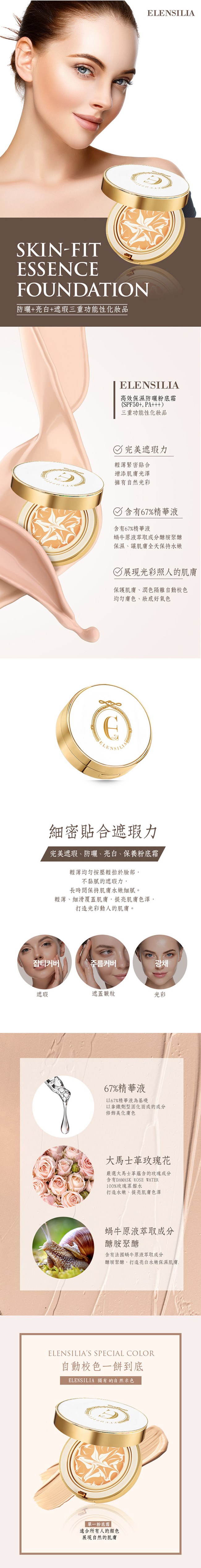 ELENSILIA 高效保濕精華防曬粉餅 SPF50+ PA+++功效: