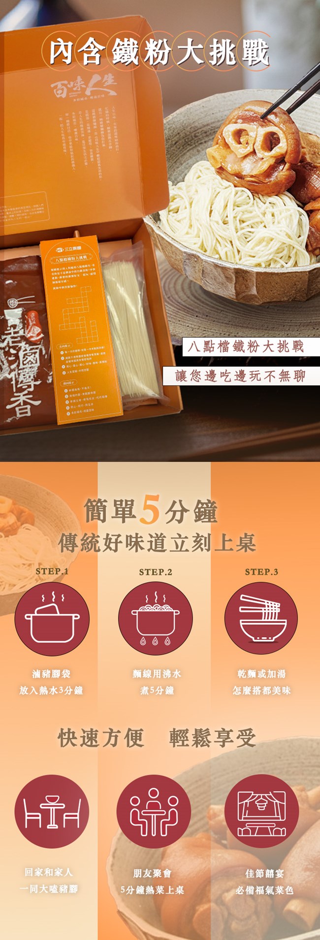 3入【 百味人生】戲劇聯名豬腳麵線限量禮盒(滷豬腳500g+麵線200g)-屠宰衛生檢查合格章/ 食品追溯追蹤系統制度(一Q)