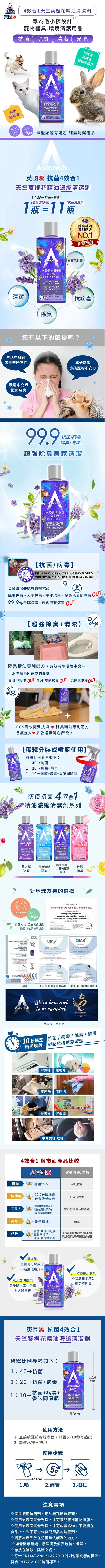 品名:英國潔Astonish抗菌四效合一精油清潔劑-天竺葵橙花精油(養寵物適用)