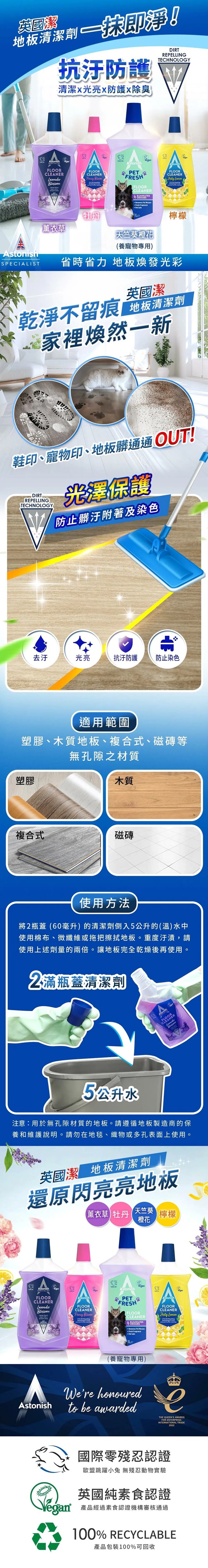 品名:英國潔Astonish抗汙光亮地板清潔劑-天竺葵(寵物適用)