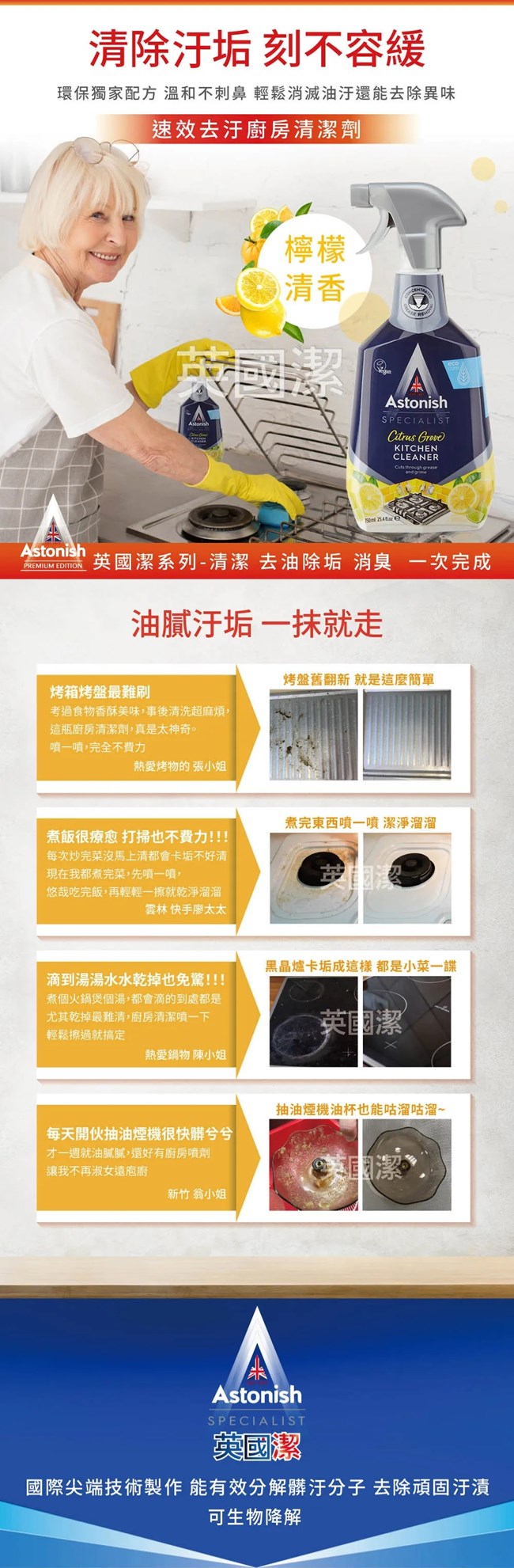 品名:英國潔Astonish速效去汙廚房清潔劑(柑橘果香)