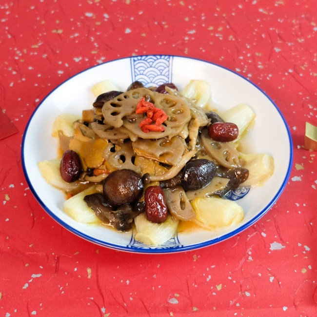 成 份: 娃娃菜、杏鮑菇、蓮藕、鴻喜菇、香菇、黑木耳、老薑片、蠔油【水、糖、蠔汁(蠔、水、鹽)、鹽、粘稠劑(羥丙基磷酸二澱粉)、調味劑(L-麩酸鈉)、小麥粉、著色劑(焦糖色素)】、麻油【大豆油、芝麻油】、米酒【米、糖、酒麴、水】、銀杏、香菇粉、枸杞、太白粉【馬鈴薯澱粉】、紅棗、當歸片、川芎、白胡椒粉【麩皮粉、麥芽糊精、綠辣椒、胡椒(11%)、玉米澱粉、雞心椒、茶枝、八角、當歸(調味用)】。
