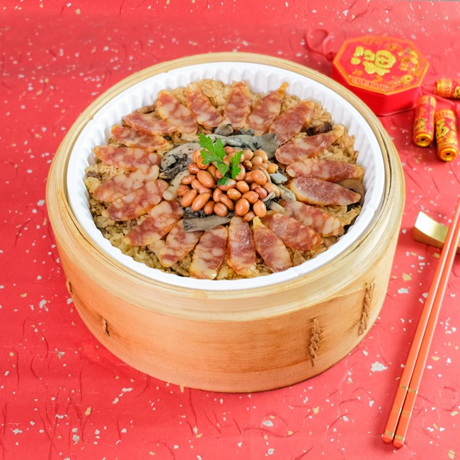 於米糕上,將米糕拌勻即可食用。(請適時加水入鍋,避免乾燒)