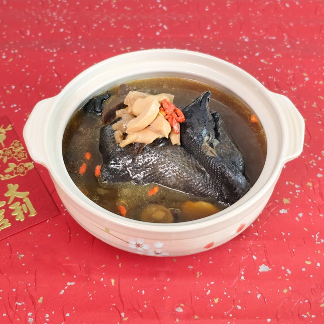 成 份: 水、烏骨雞、冷凍響螺片【響螺片、水、鹽、酵母精粉(酵母萃取物、麥芽糊精)】、菜