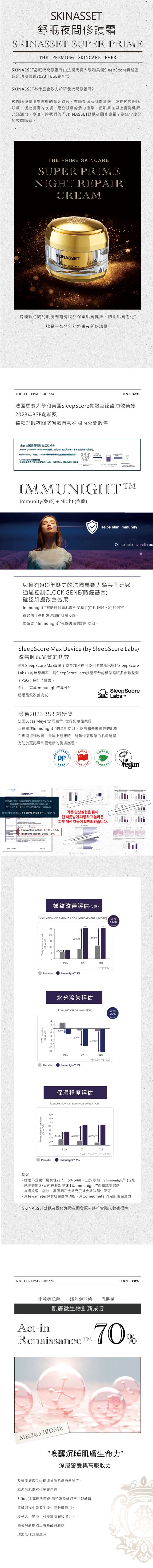 SKINASSET舒眠夜間修護霜,專為夜間肌膚修護設計,添加 Immunight™ 夜間修護科技,幫助提升肌膚自我修復力,減少外界環境壓力帶來的影響。