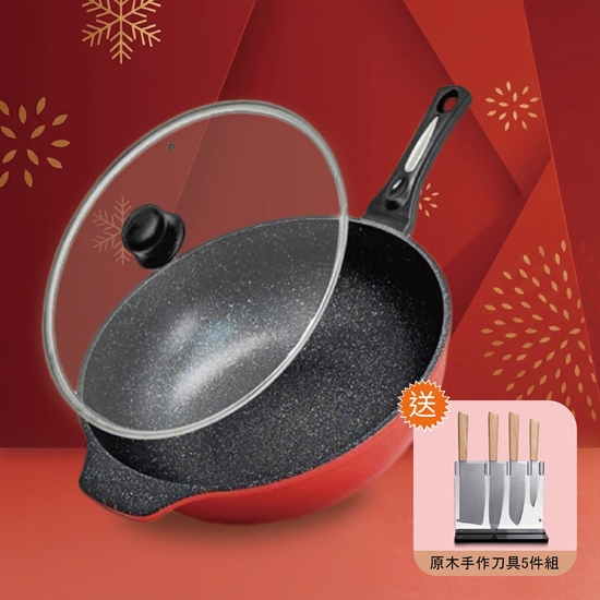 富貴限量版【義大利CUOCO】34cm鈦晶岩紅大寶 (送原木手作刀具5件組)限量售完不補-美