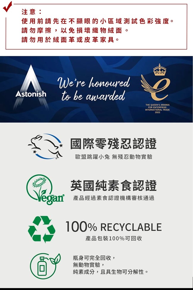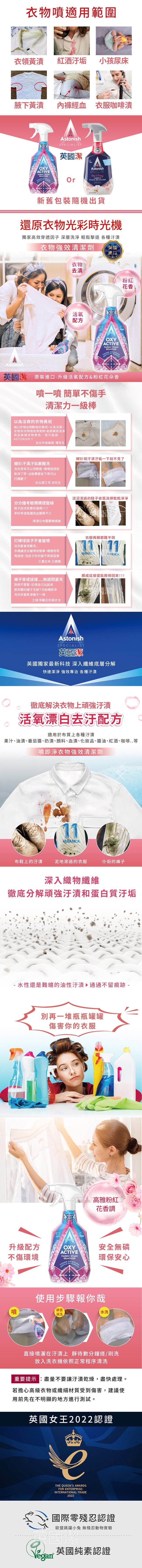 英國潔Astonish 衣物織品清新潔淨3件組(去漬霸*1+衣物去漬劑*1+沙發織物乾洗去汙劑*1)-美