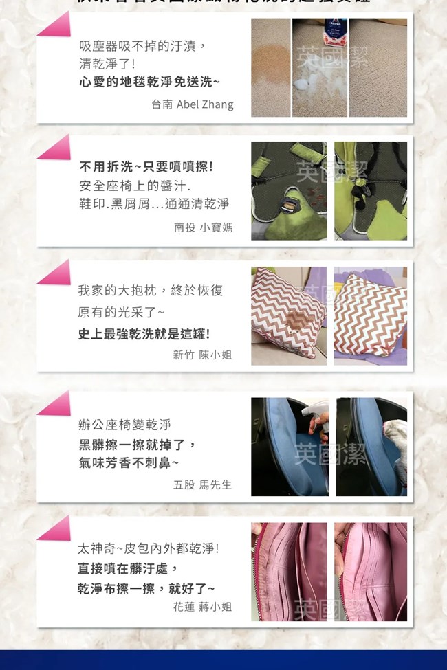 .衣物強效去漬劑(衣噴):輕鬆擊退各種衣物上的汙漬:蛋白質、咖啡、血漬等等,衣噴即淨