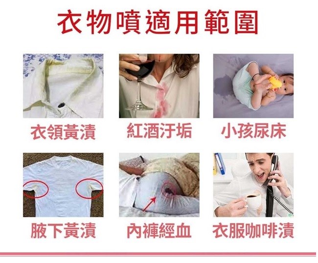 --蛋白質、咖啡、血漬等等,衣噴即淨