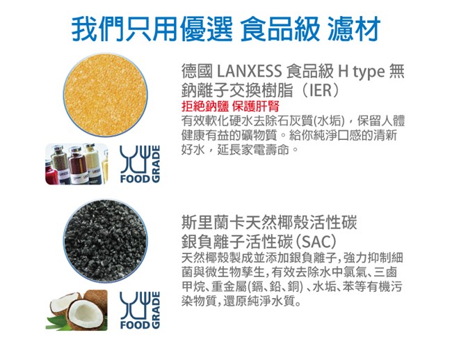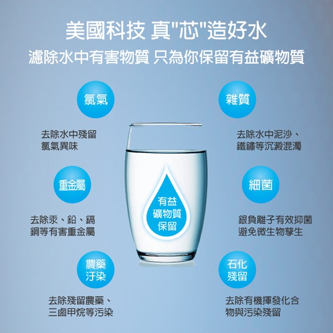 注意事項:本產品僅用於自來水,請勿使用於水質不明或受微生物汙染之水源。