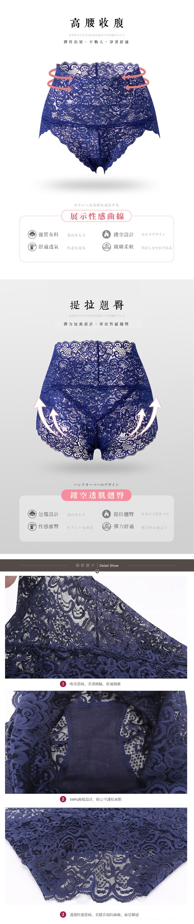 ※材質:蕾絲-90%錦綸+ 10%氨綸/ 底襠-100%棉