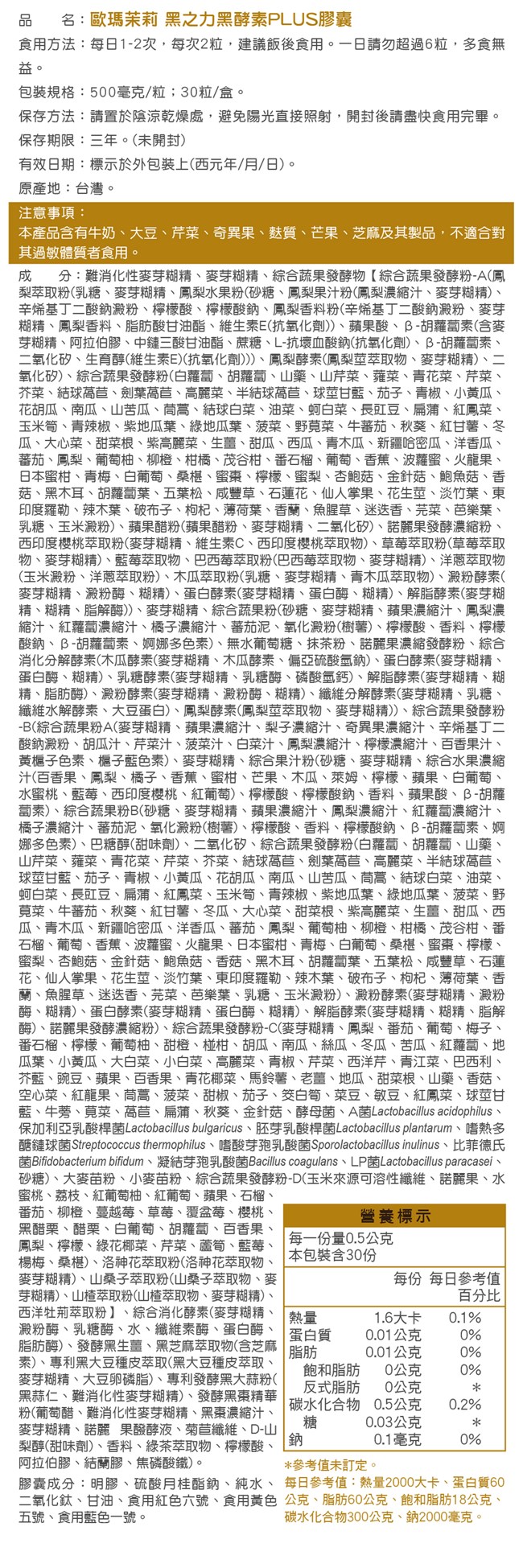 【歐瑪茉莉】黑酵素PLUS 30粒*1盒(共30粒、升級136種蔬果酵素+專利消化酵素)