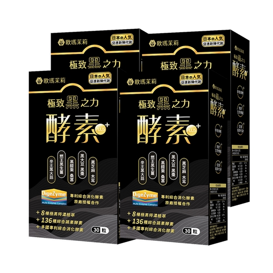 【歐瑪茉莉】黑酵素PLUS 30粒*4盒(共120粒、升級136種蔬果酵素+專利消化酵素)