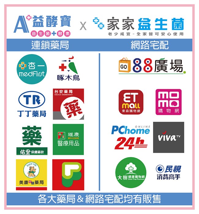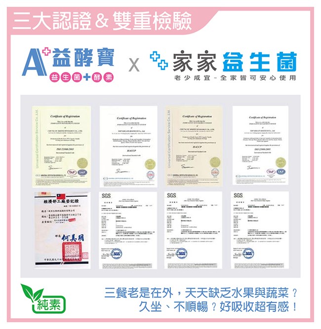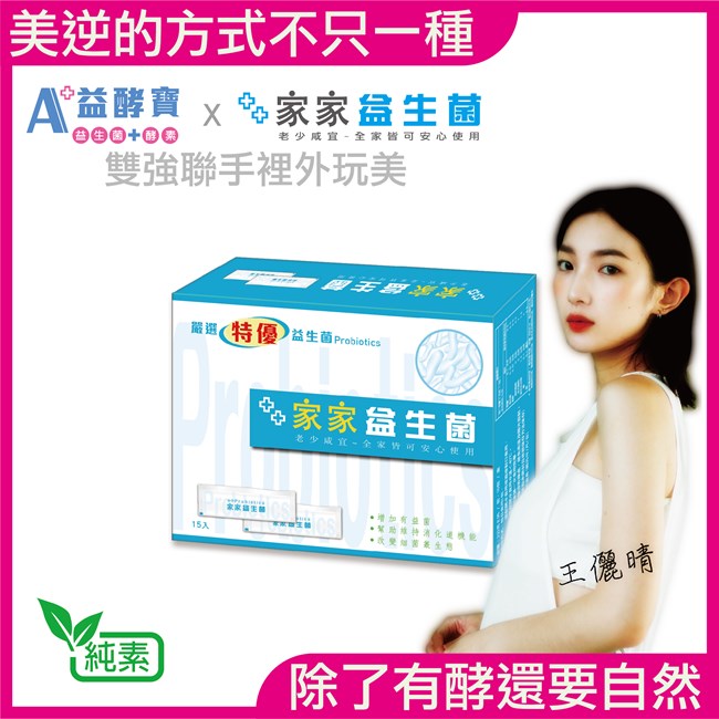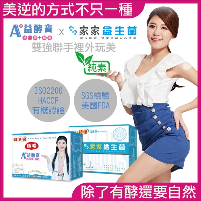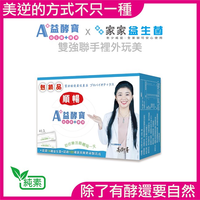 超强组合益生菌搭配酵素的 A+益酵寶 現在! 買就送家家益生菌