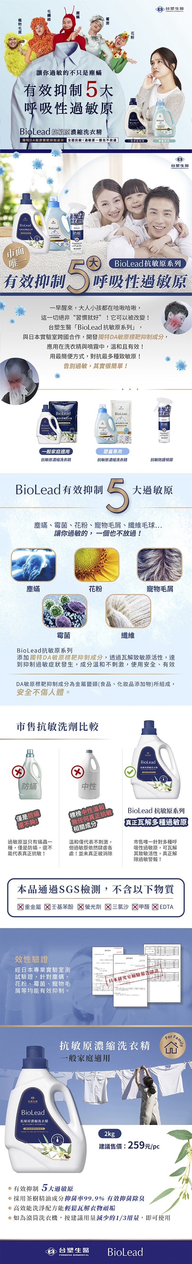 品名:BioLead抗敏原濃縮洗衣精2kg(3瓶入)
