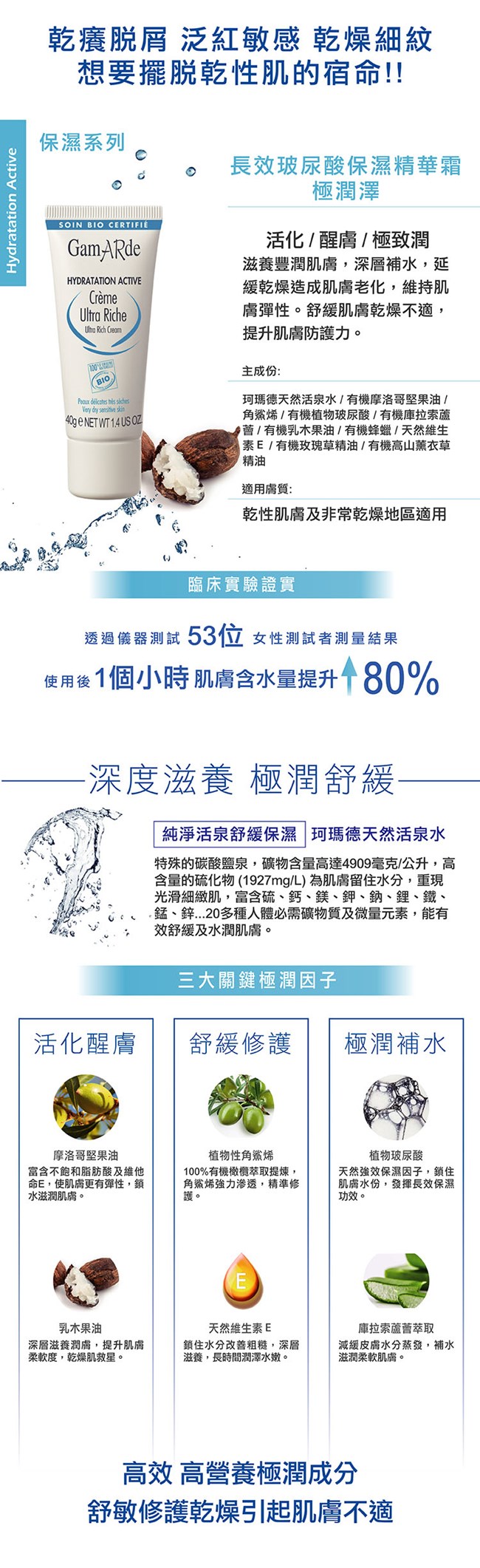 【GAMARDE 珂瑪德】長效玻尿酸保濕精華霜-極潤澤40g