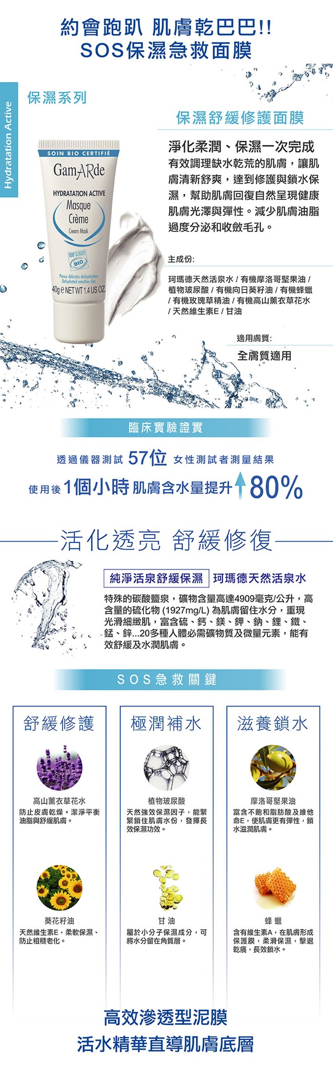 【GAMARDE 珂瑪德】保濕舒緩修護面膜40g